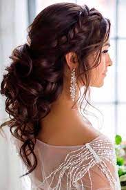 Frisuren zur Hochzeit locken mit Zopf.